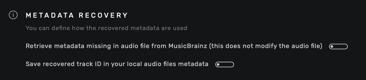 With respect, Mark makes the point that all modifications operated by Audirvana/MusicBrainz before the toggle is reversed in āmetadata Recoveryā are irreversible modifications, and he is undeniably right.