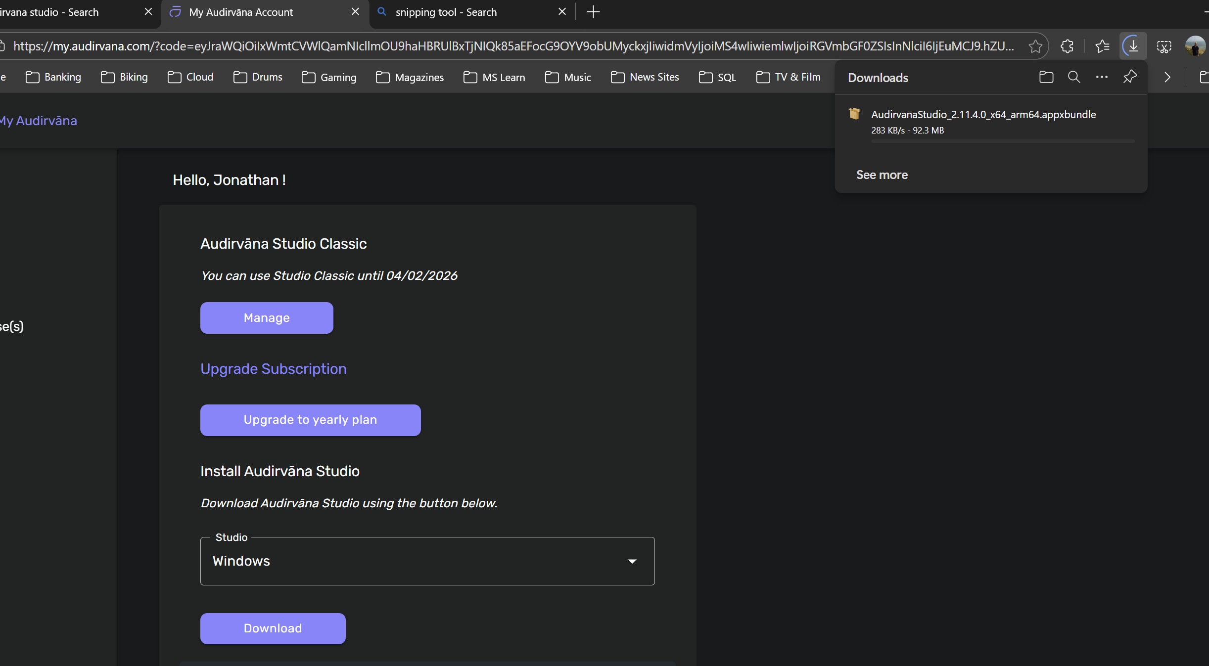 Tried to resubscribe to studio this afternoon, but having issues with installation on Windows 11.