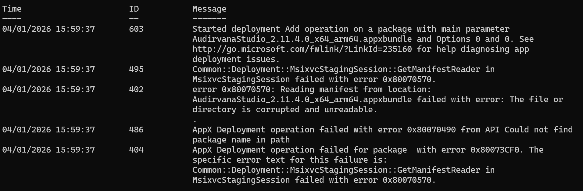 PS C:\WINDOWS\system32> Add-AppxPackage C:\Temp\AudirvanaStudio_2.11.4.0_x64_arm64.appxbundle