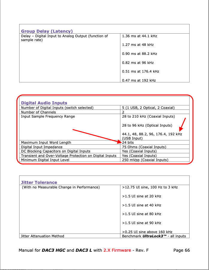 The DAC 3 is limited to 24/192kHz⊠You cannot gain resolution from a source 16/44.1kHz file⊠the only thing you gain in the modulation to DSD64 is a higher Nyquist Fs and dynamic range due to the noise-shaping⊠Your PCM files are limited to the Nyquist Fs of the master encoding, all resolution and bandwidth information is codified in that master⊠Modulation to DSD only produces a more refined signal, especially when it is presented as native 1-bit PDM to a simple low-pass filtered D/A circuit for output⊠However, what is happening with DSD in the 9028PRO chipset, is the 1-bit PDM signal is subsequently decimated to PCM again, which is superfluous and a waste of platform level resourcesâŠ