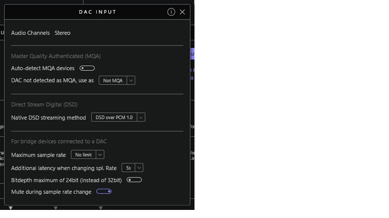 i dont have any of the device options because i am output over ethernet to my usbridge.