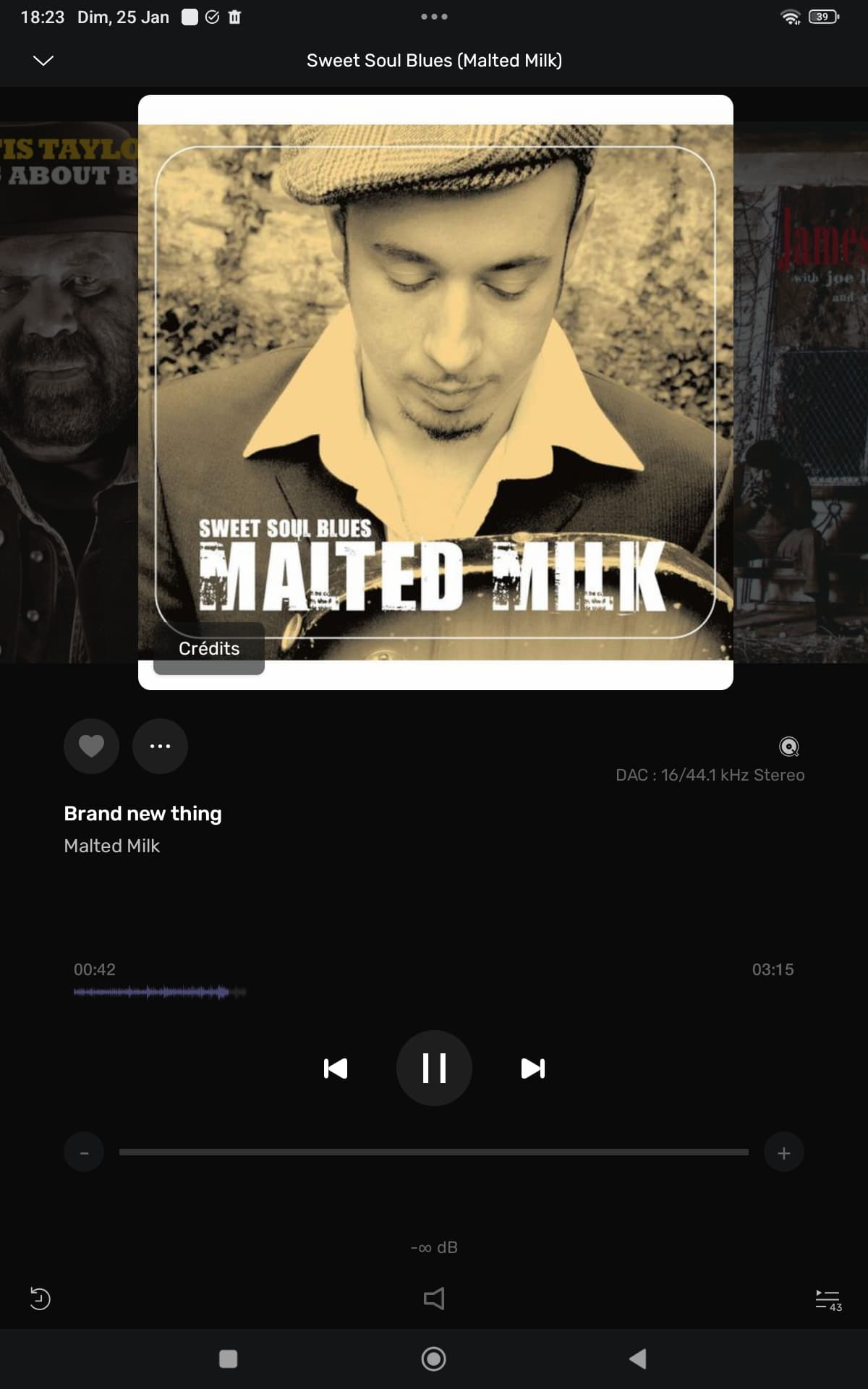 2- lorsque quâon visualise un album, le bouton âCrĂ©ditâ est placĂ© sur lâimage de lâalbum et donc peu visible :
