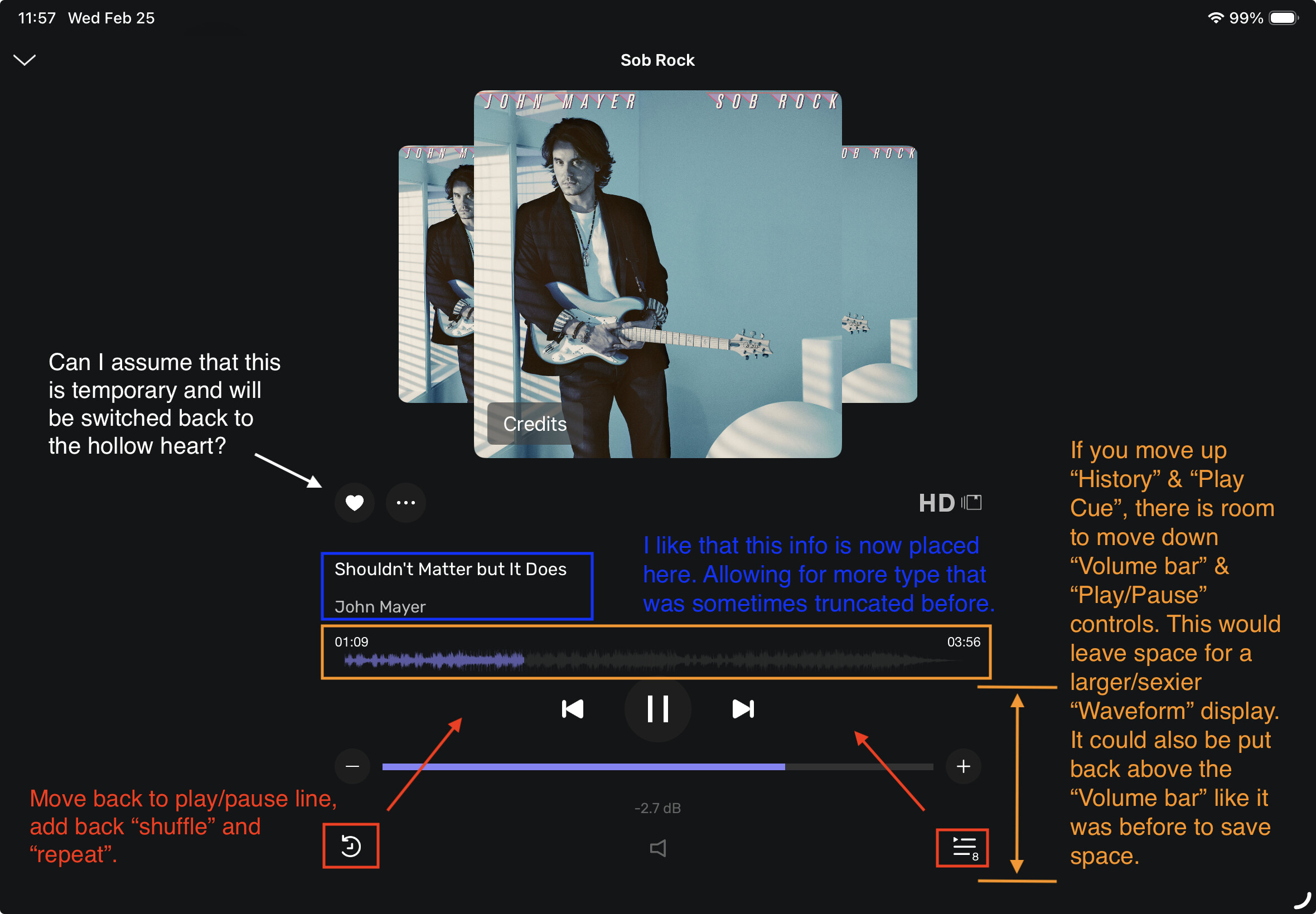 When in the Mini-Player, it would be great to be able to tap the album cover image and have it expand to fill the width (or height) of the screen. Then to update in this minimalist style each time a new song begins. This would allow the user to have their iPhone or iPad double as a decorative “Now Playing” display, without the other visual clutter.