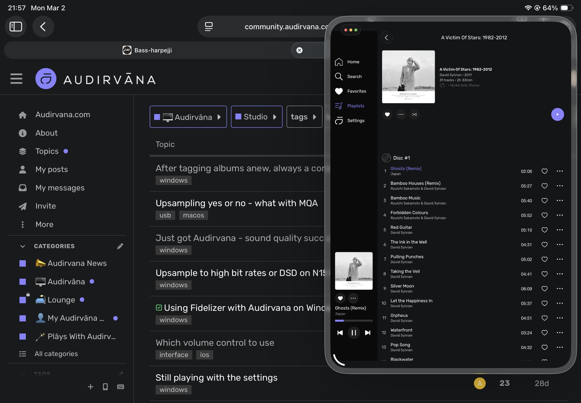@Antoine , I do wonder if something is going on with Audirvana Core for me in Linux. (I note the various reports of bursts of noise, tics, pops, etc., from other users.) I have a pci-e USB card coming on Saturday, just to try to eliminate any problems with the USB signal connection from the computer as a cause. Will let you know what happens.