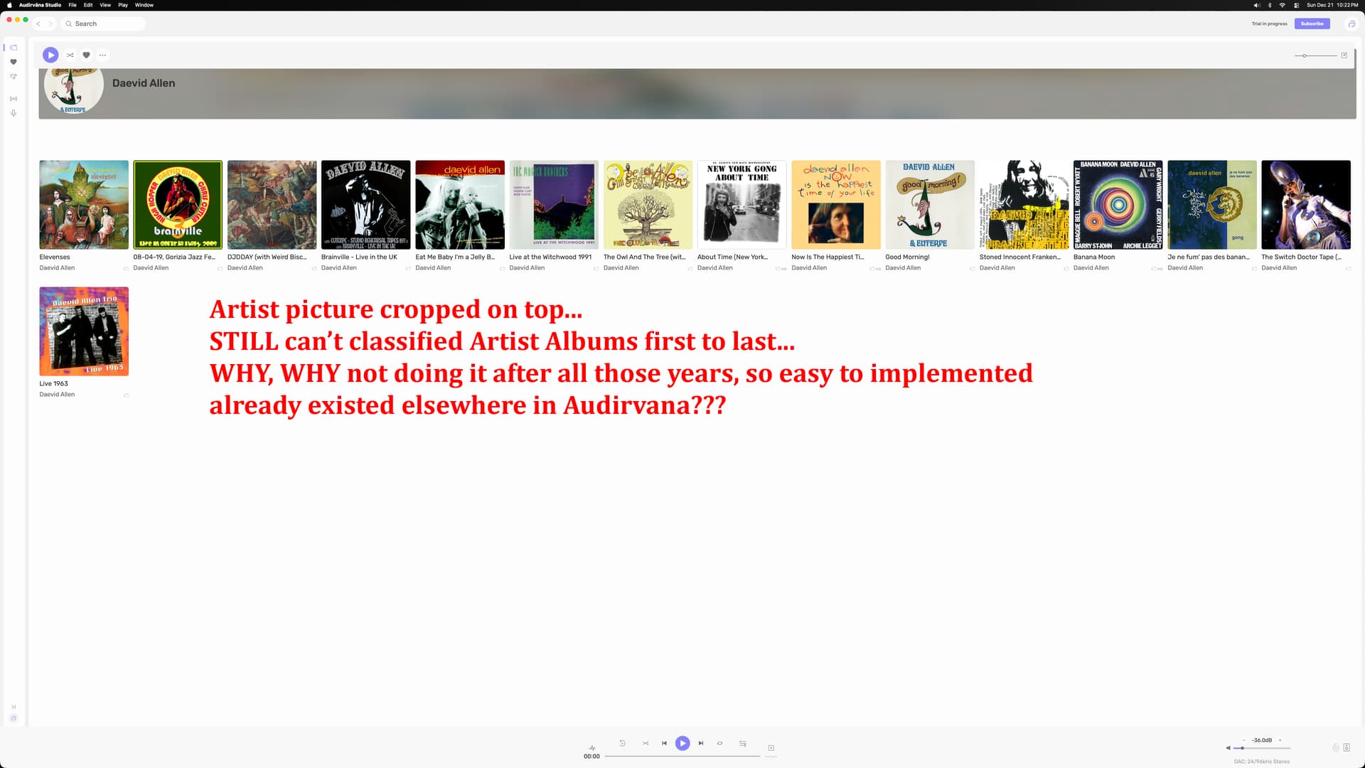 Right now what I and many others feel with audirvana is that it gets in your way as a software, great sound but a bit of a struggle to use, I am trying to help you to ged rid of the struggle so it feels intuitive and easy and fluid to use.