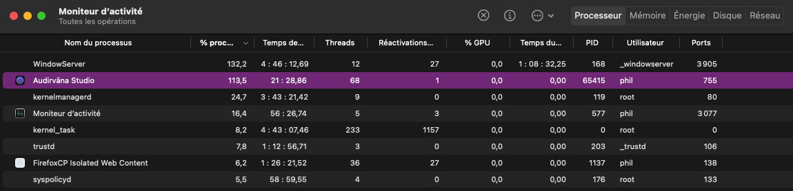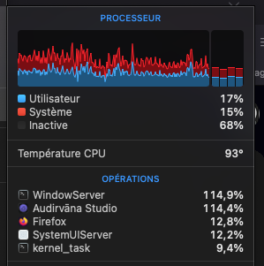 Nota: la conso cpu semble être depuis que j’ai effectué une reconnexion à mon compte (à la base pour supprimer la limitation au niveau audioscan)
