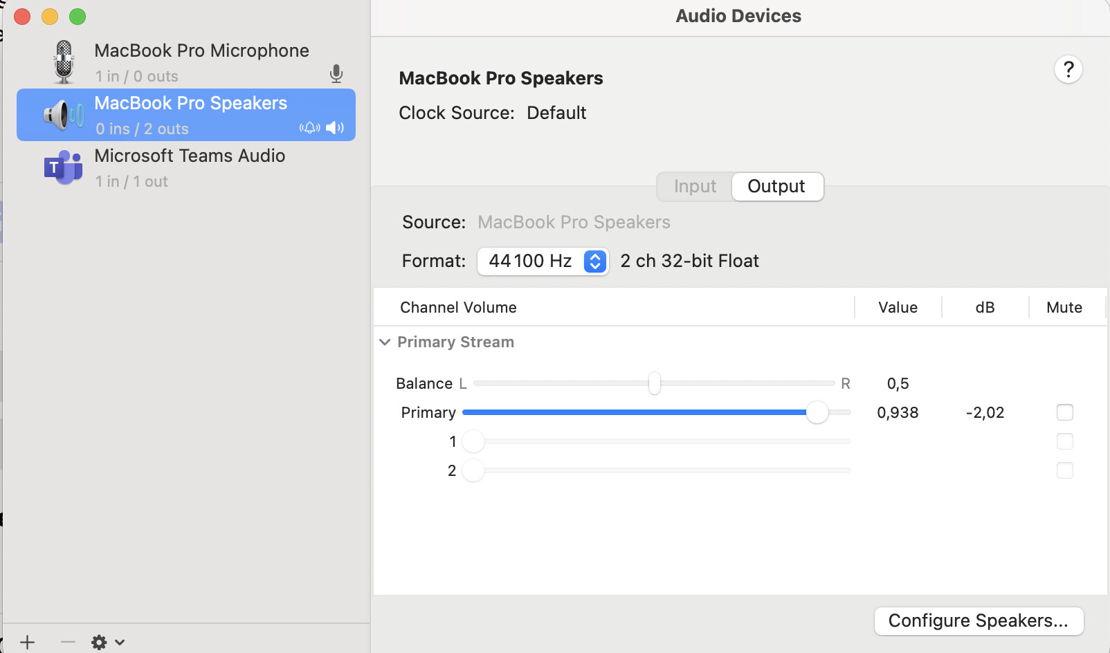When Audirvana is open… what is the output device… this is what matters when setting the speaker configuration…