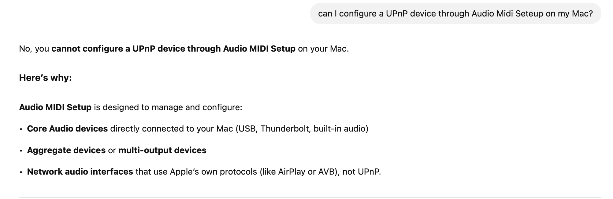 Audio Midi Setup only sees local speakers. Not UPnP devices…