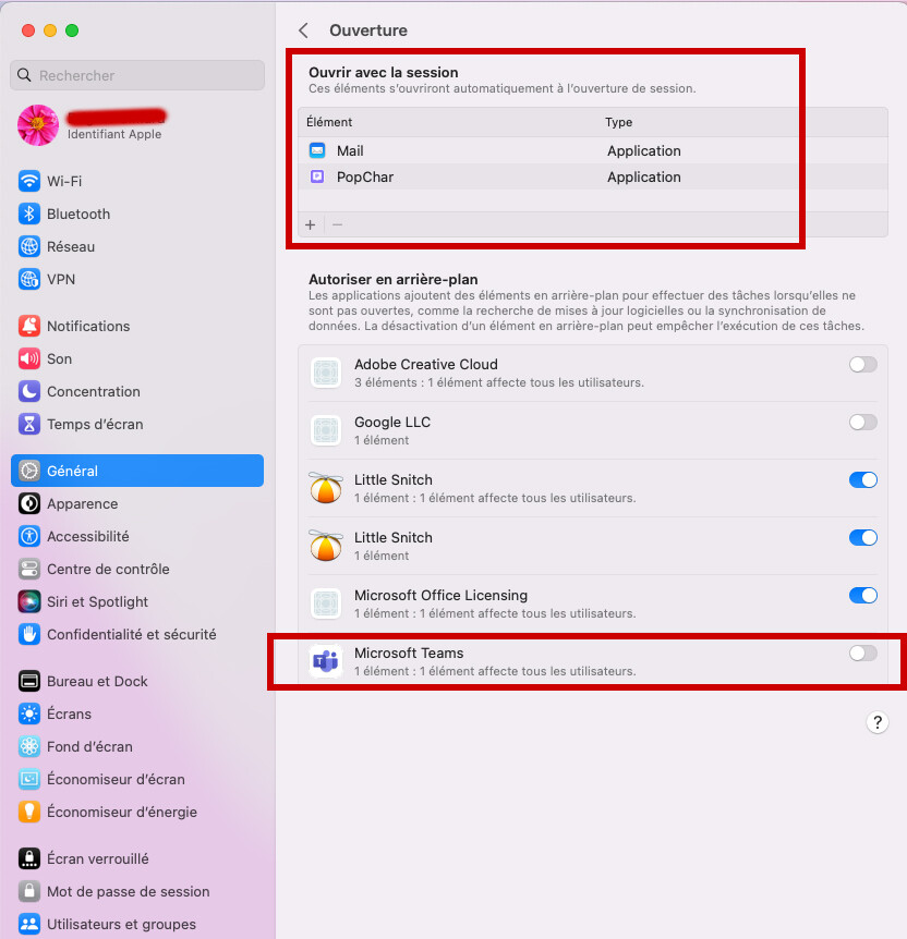 Apple settings then General tab then login options