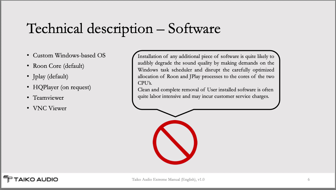 I understand your POV, but Emile Bok the developer of Taiko tried all available OSs, including Linux and found the stripped Windows the best sounding. Further he tries nearly all new motherboards. The tech in his new Olympus server is way ahead of the competitors (IMO). I know him, he hears like a bat.